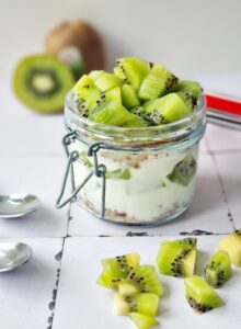 Hoe maak je zo’n feestje? Pak een leuk glaasje en maak laagjes met granola, Griekse yoghurt en natuurlijk blokjes Zespri Kiwi’s!