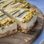 Hoe maak je het klaar? 1) Bodem maken; Meng de gepofte quinoa met de gesmolten kokosolie, gesmolten pistachepasta en maple syrup tot een plakkerig mengsel. 2) Vorm vullen Bekleed een taartvorm (ca. 20 cm doorsnede) met bakpapier en schep het quinoamengsel erin. Druk stevig aan met de achterkant van een lepel. Zet 15 minuten in de vriezer. 3) Gelatine voorbereiden Week de gelatineblaadjes in koud water. Knijp ze daarna goed uit. 4) Kwarkvulling maken Verwarm de gelatine met een klein beetje water in een pannetje tot het volledig is opgelost. Voeg 2 eetlepels van de vanillekwark toe en roer goed door. Meng daarna de rest van de kwark erdoorheen tot een glad geheel. 5) Taart samenstellen Haal de bodem uit de vriezer en giet het kwarkmengsel over de bodem. Strijk glad met een spatel. 6) Opstijven Zet de taart minimaal 4 uur in de koelkast om goed op te stijven. 7) Topping toevoegen Garneer vlak voor het serveren met de gesmolten pistachecrème en de gehakte pistachenootjes.